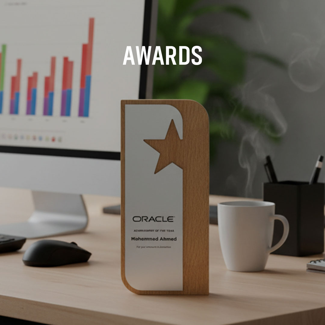 Crafted from repurposed materials, these unique trophies showcase creativity and responsibility, making them a perfect choice for eco-conscious clients.