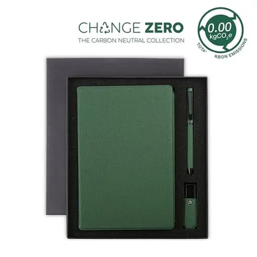 The Lenzen is a CHANGE ZERO Sustainable Gift Set containing a GRS-certified recycled PU refillable A5 ruled hardcover notebook, a matching recycled PU pen, and a recycled PU keychain with a 32GB USB flash drive. This set’s carbon footprint is measured and offset, delivering a practical, elegant, and environmentally responsible impression.