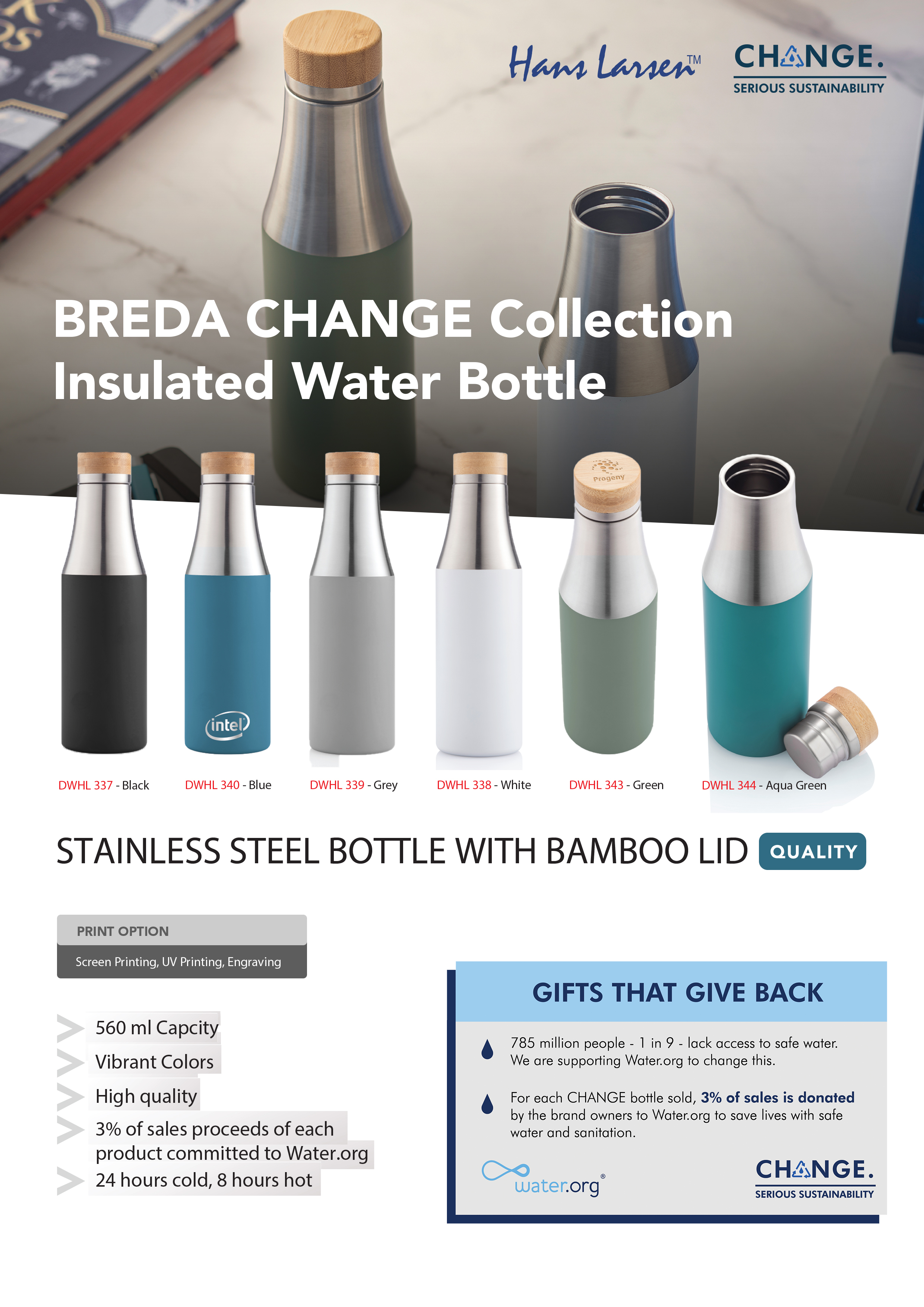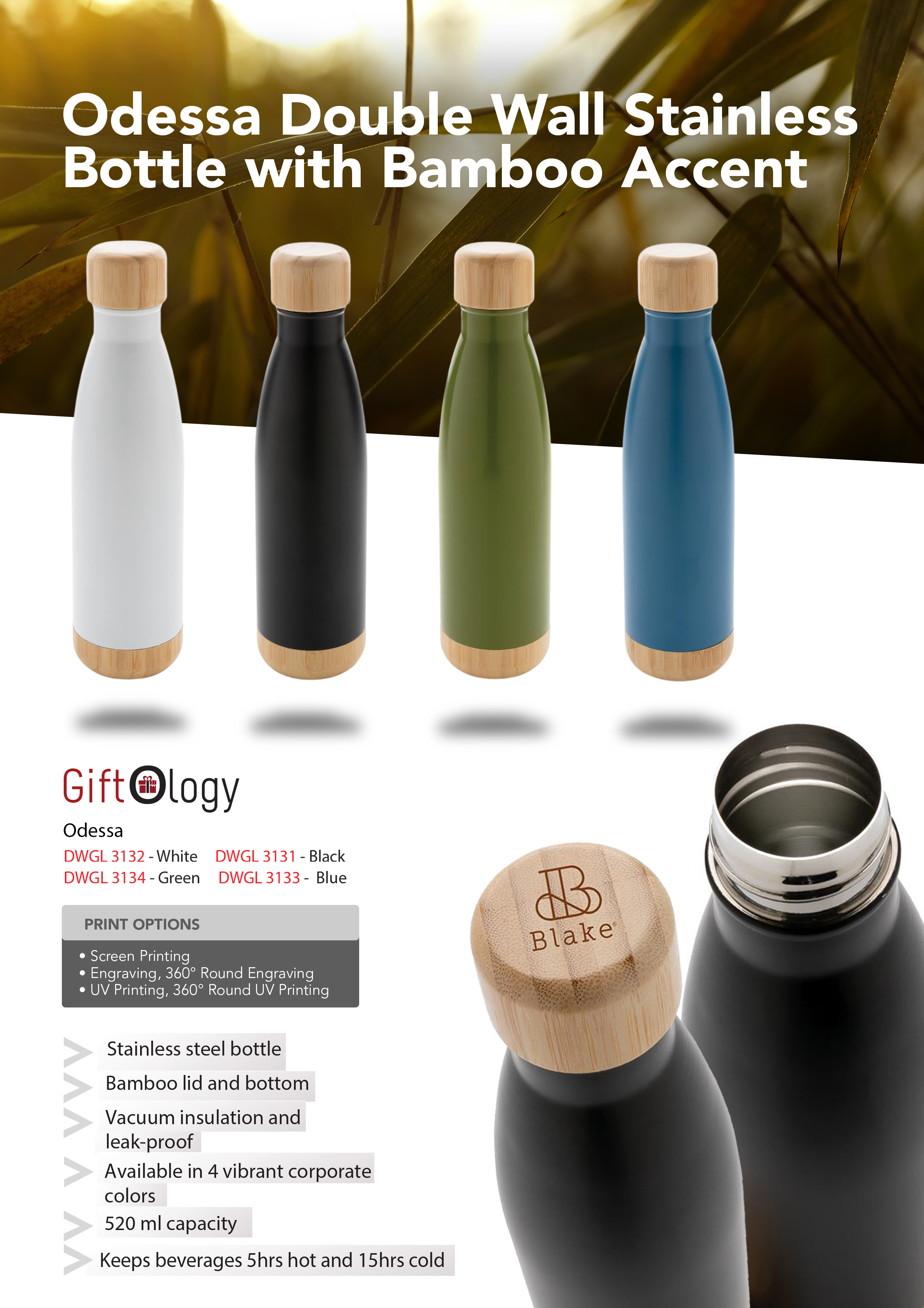Odessa Double Wall Stainless Bottle with Bamboo Accent