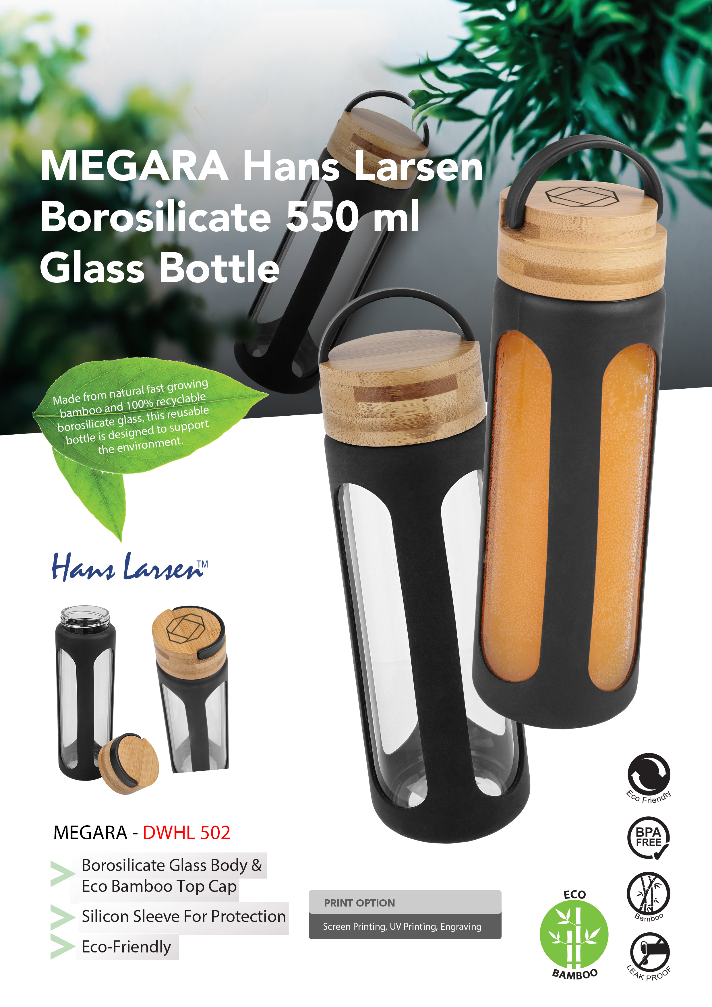 Eco-Neutral Borosilicate Glass Bottle with Cork Lid