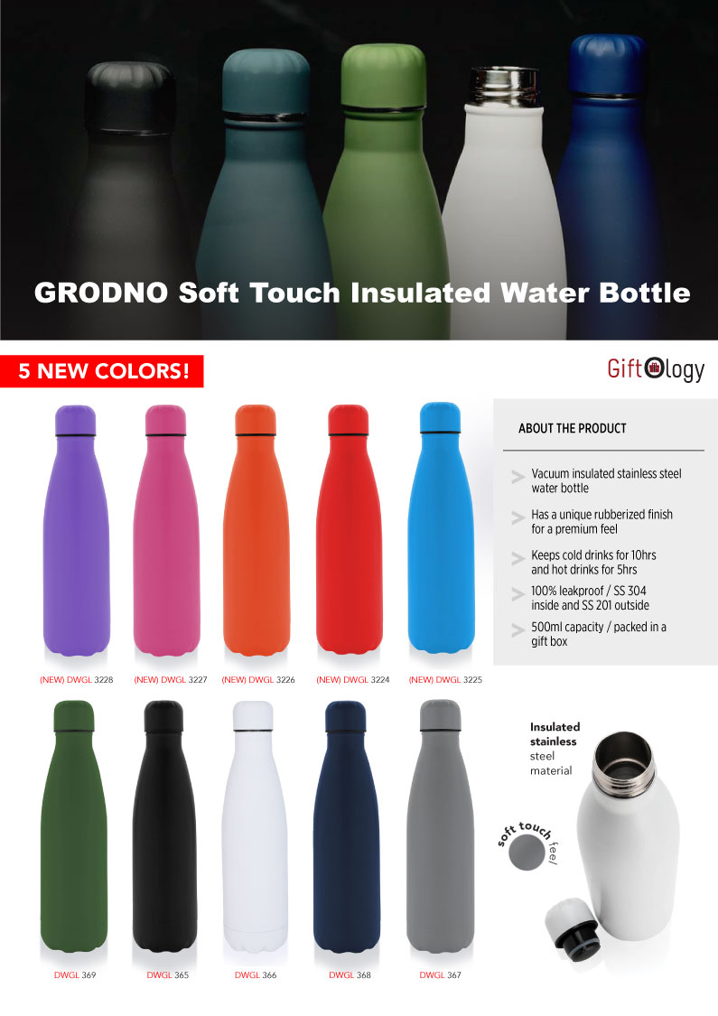 Giftology Soft Touch Double Walled Insulated Water Bottle